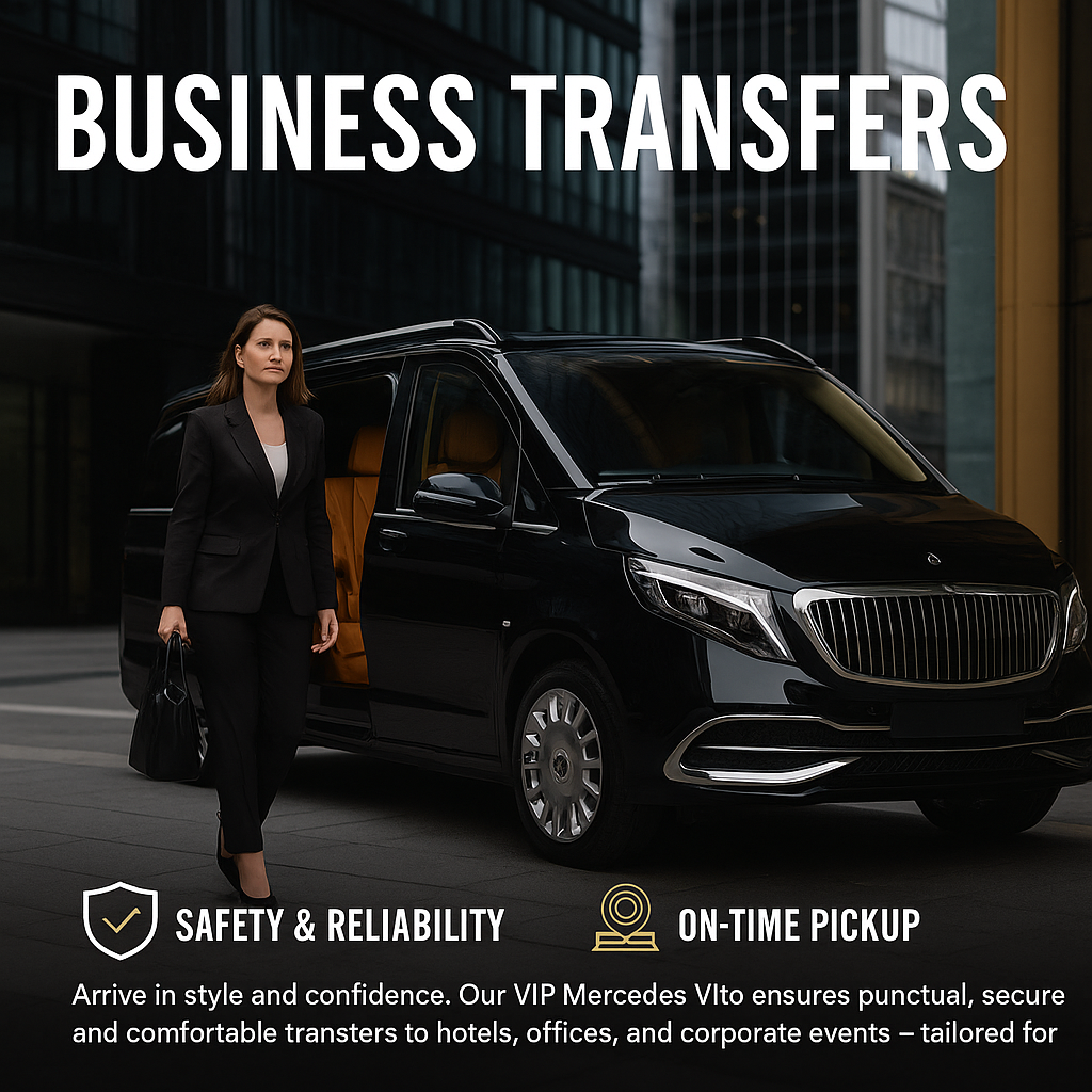 Mercedes Vito, Sprinter, and Maybach options with spacious luggage and top comfort.